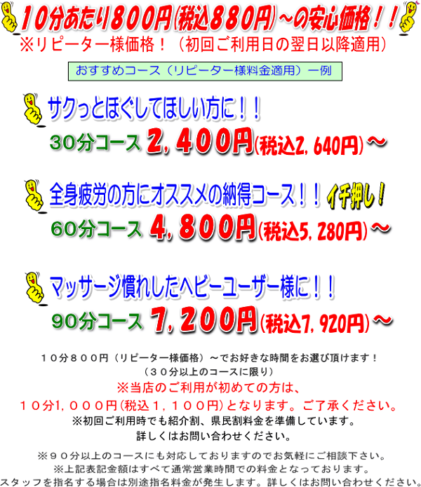 | 当店紹介 | 施術料金 | 交通アクセス | 会社概要 |